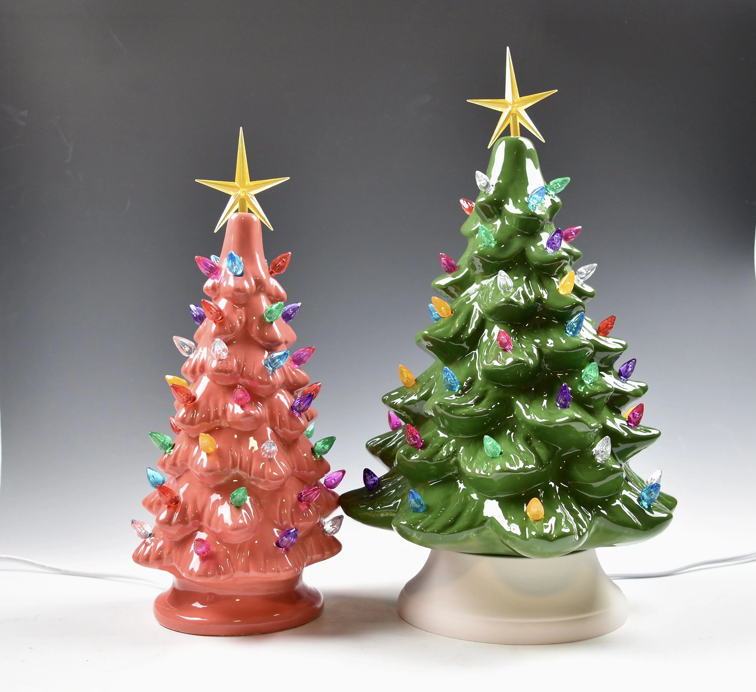 We’re excited to be offering ceramic Christmas trees this year. We have two sizes to choose from and they all come with the light kits.